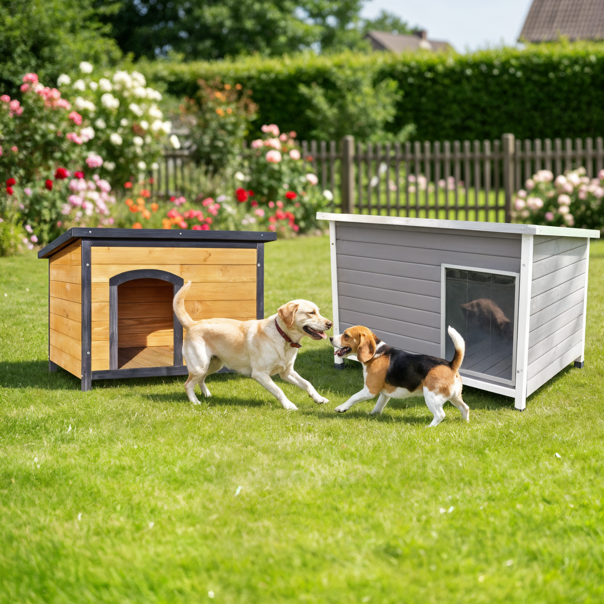 - Große Hunde: stabil gebaute XXL-Hütten mit verstärktem Boden und wetterfester Isolierung
