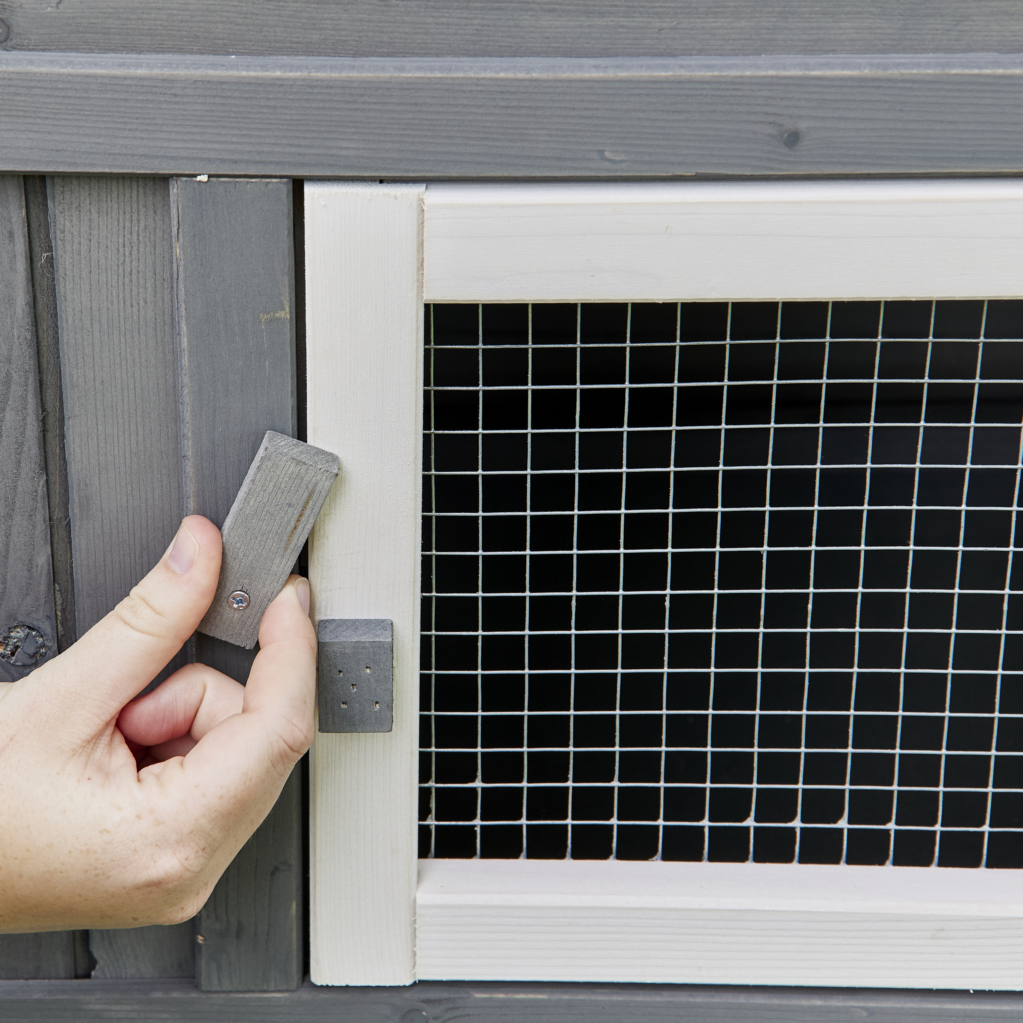 Wenn du einen Stelzenstall mit eingebautem Freilauf suchst, ist der Kaninchenstall Rudy die richtige Wahl: Hier ist der Auslauf bereits fest integriert und deine Tiere können selbstständig zwischen Ruhe- und Bewegungszone wechseln.