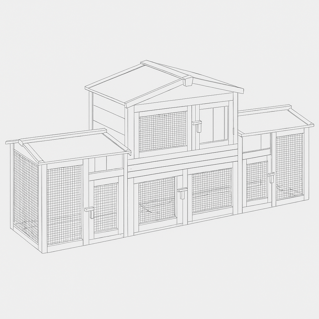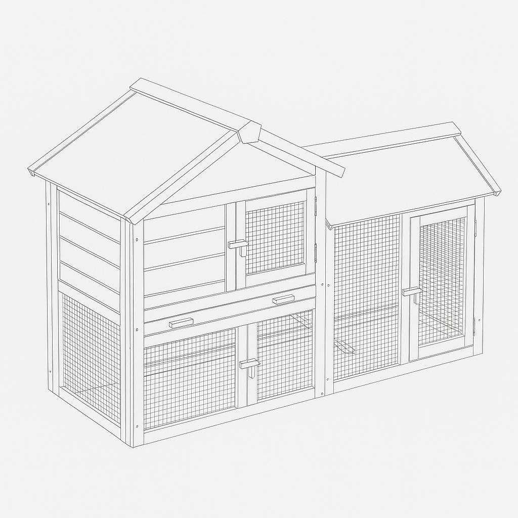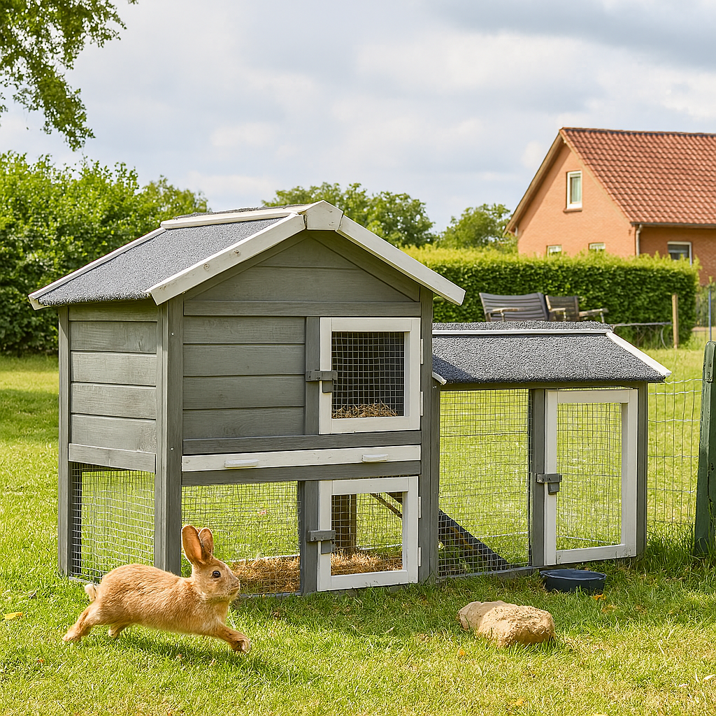 Wenn du deinen Kaninchen mehr Platz und Abwechslung bieten willst, sind Ställe mit zwei verbundenen Auslaufbereichen eine praktische Lösung. Die Tiere haben deutlich mehr Bewegungsfreiheit als bei Standardmodellen – können sich aus dem Weg gehen, erkunden, sich ausruhen oder aktiv bleiben, ganz wie sie möchten. Beide Auslaufbereiche sind miteinander verbunden und werden gemeinsam genutzt – ideal für kleine Gruppen mit viel Bewegungsdrang.