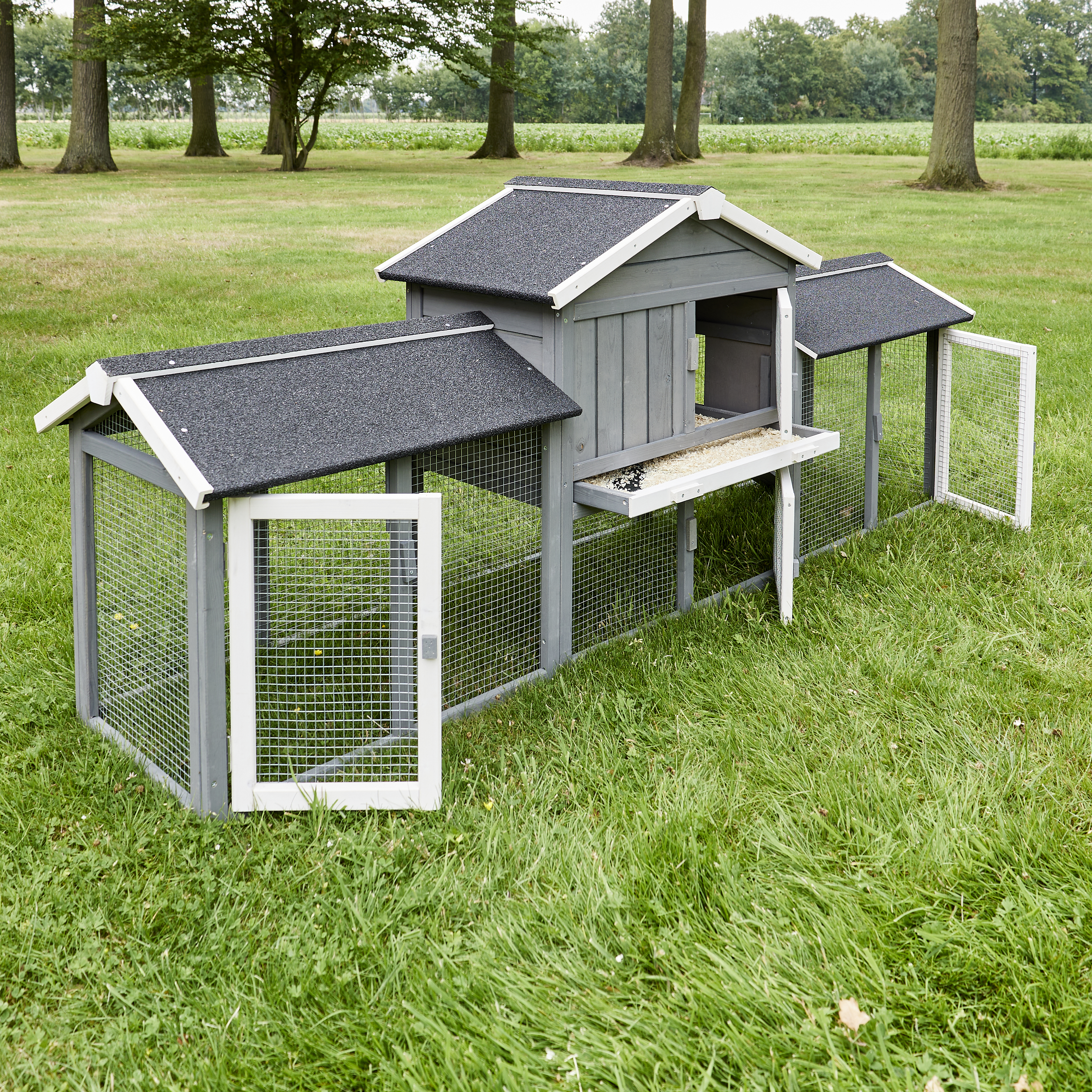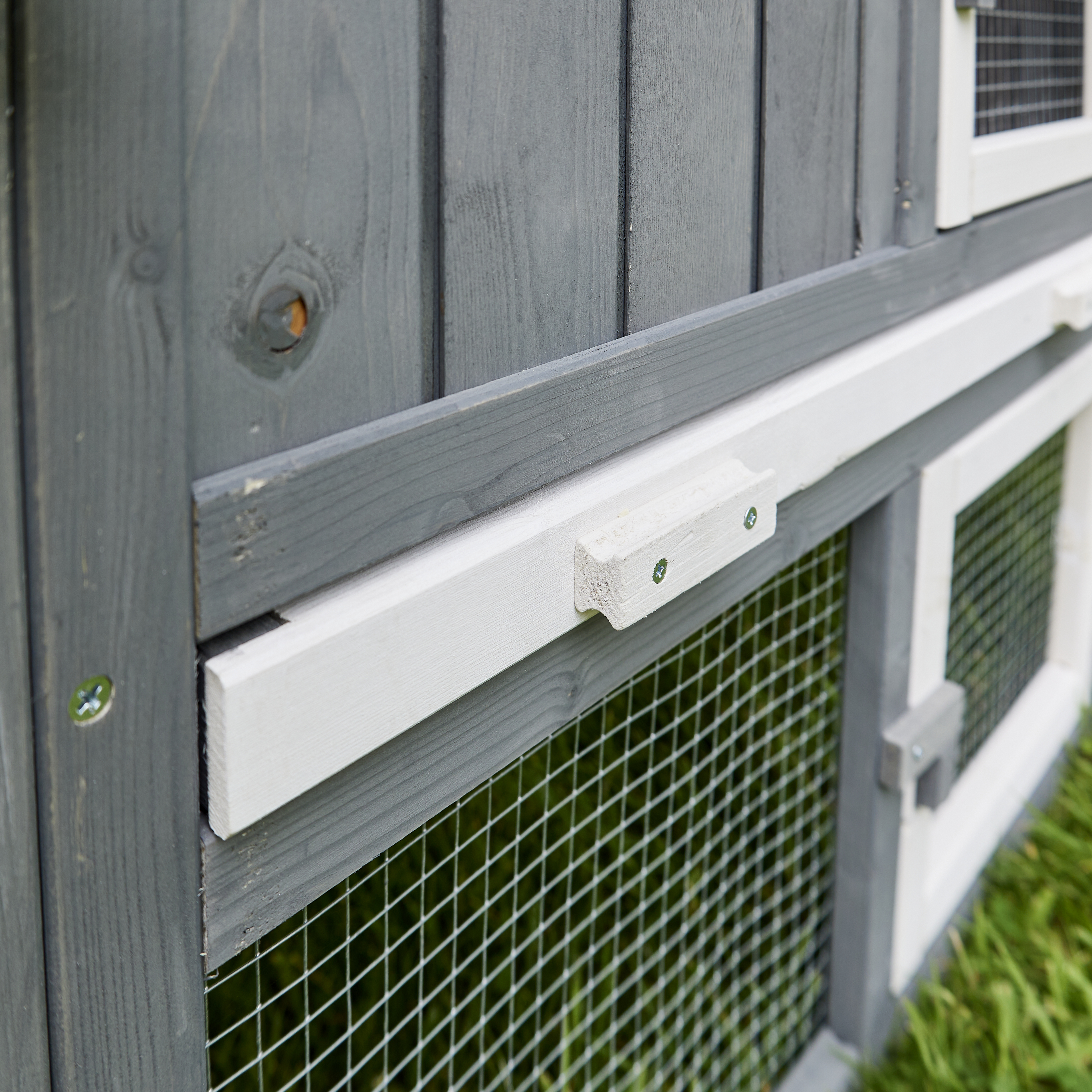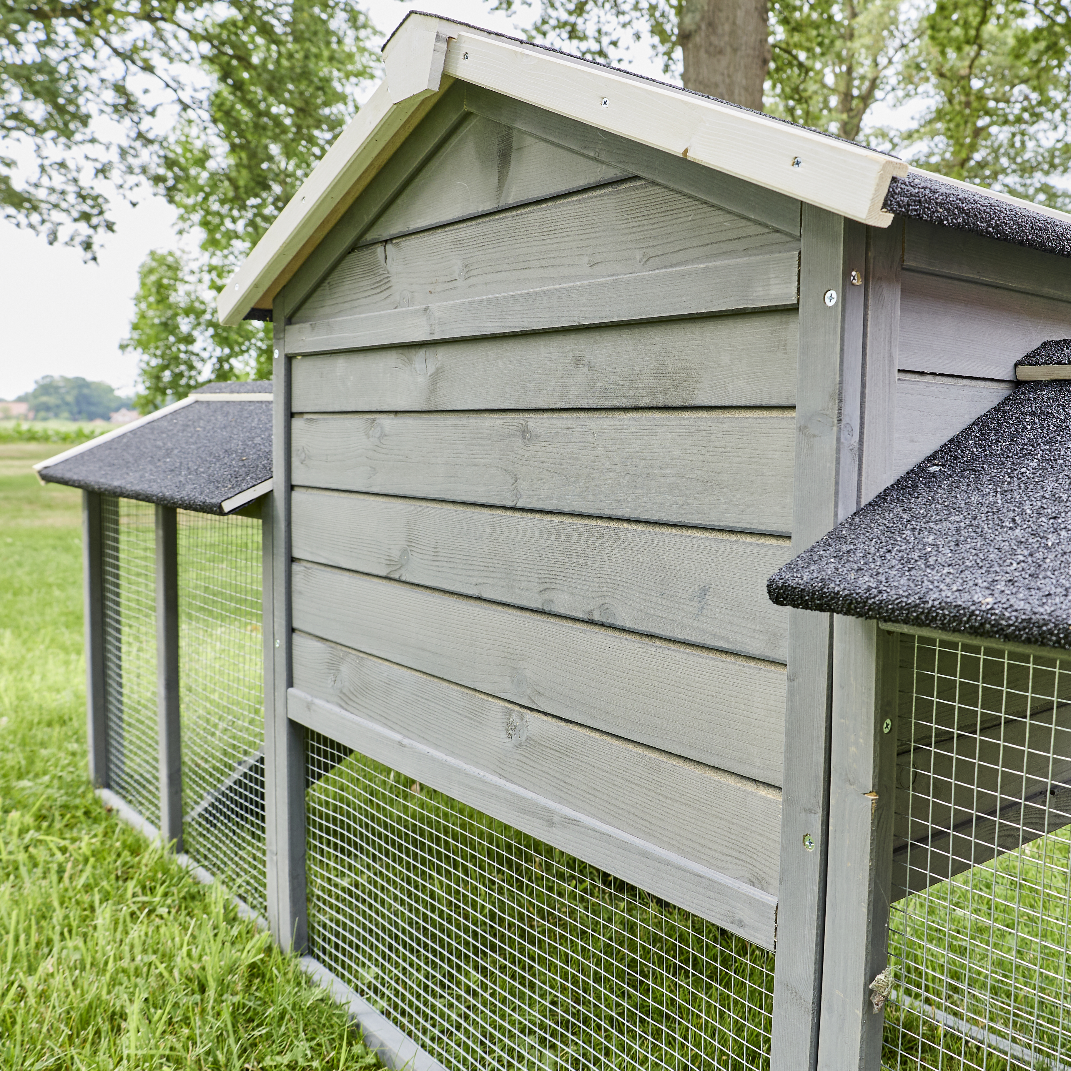 Wenn du deinen Kaninchen mehr Platz und Abwechslung bieten willst, sind Ställe mit zwei verbundenen Auslaufbereichen eine praktische Lösung. Die Tiere haben deutlich mehr Bewegungsfreiheit als bei Standardmodellen – können sich aus dem Weg gehen, erkunden, sich ausruhen oder aktiv bleiben, ganz wie sie möchten. Beide Auslaufbereiche sind miteinander verbunden und werden gemeinsam genutzt – ideal für kleine Gruppen mit viel Bewegungsdrang.