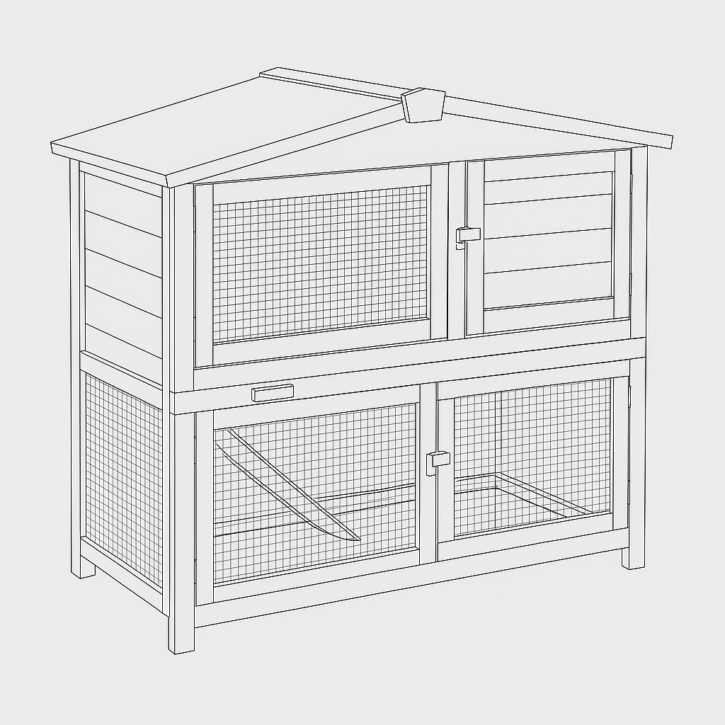 Wenn du draußen wenig Platz zur Verfügung hast, sind mehrstöckige Kaninchenställe eine clevere Lösung. Sie nutzen die Höhe statt der Breite, bieten trockene Rückzugsorte, gute Belüftung und Schutz vor Bodenfeuchtigkeit – ideal für Terrassen, schmale Gartenbereiche oder Flächen mit begrenzter Tiefe. Über feste Rampen wechseln die Tiere selbstständig zwischen den Ebenen und können sich auch bei schlechtem Wetter ausreichend bewegen.