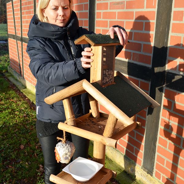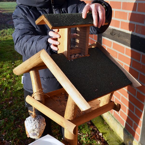 - Großes Futterhaus mit 48 × 27 cm (B × H) Dachfläche